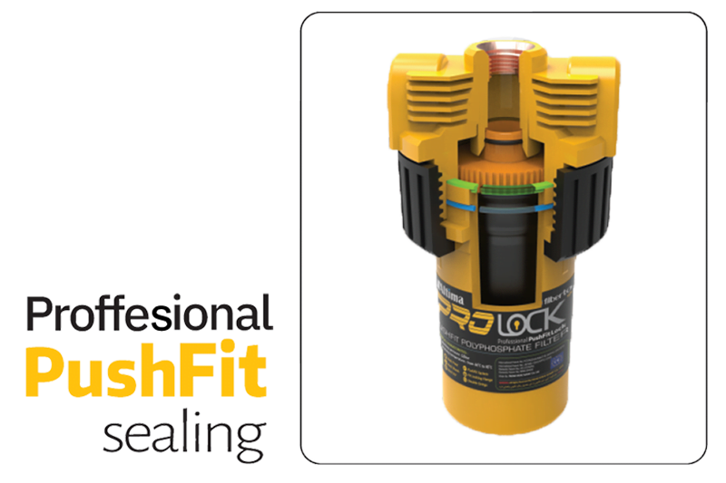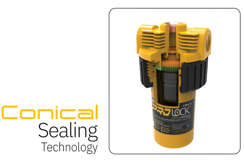 دومین ویژگی فیلتر، طراحی دوبل اورینگ برای آب بندی هوزینگ می باشد بدین گونه که اورینگ بالایی بر روی شیار بالایی روی هوزینگ قرار می گیرد و اورینگ دوم به صورت پوش فیت آب بندی را انجام می دهد. این گونه آب بندی تنها آب بندی دوبل اورینگ در میان تمام فیلترهای پلی فسفات موجود در بازار می باشد.